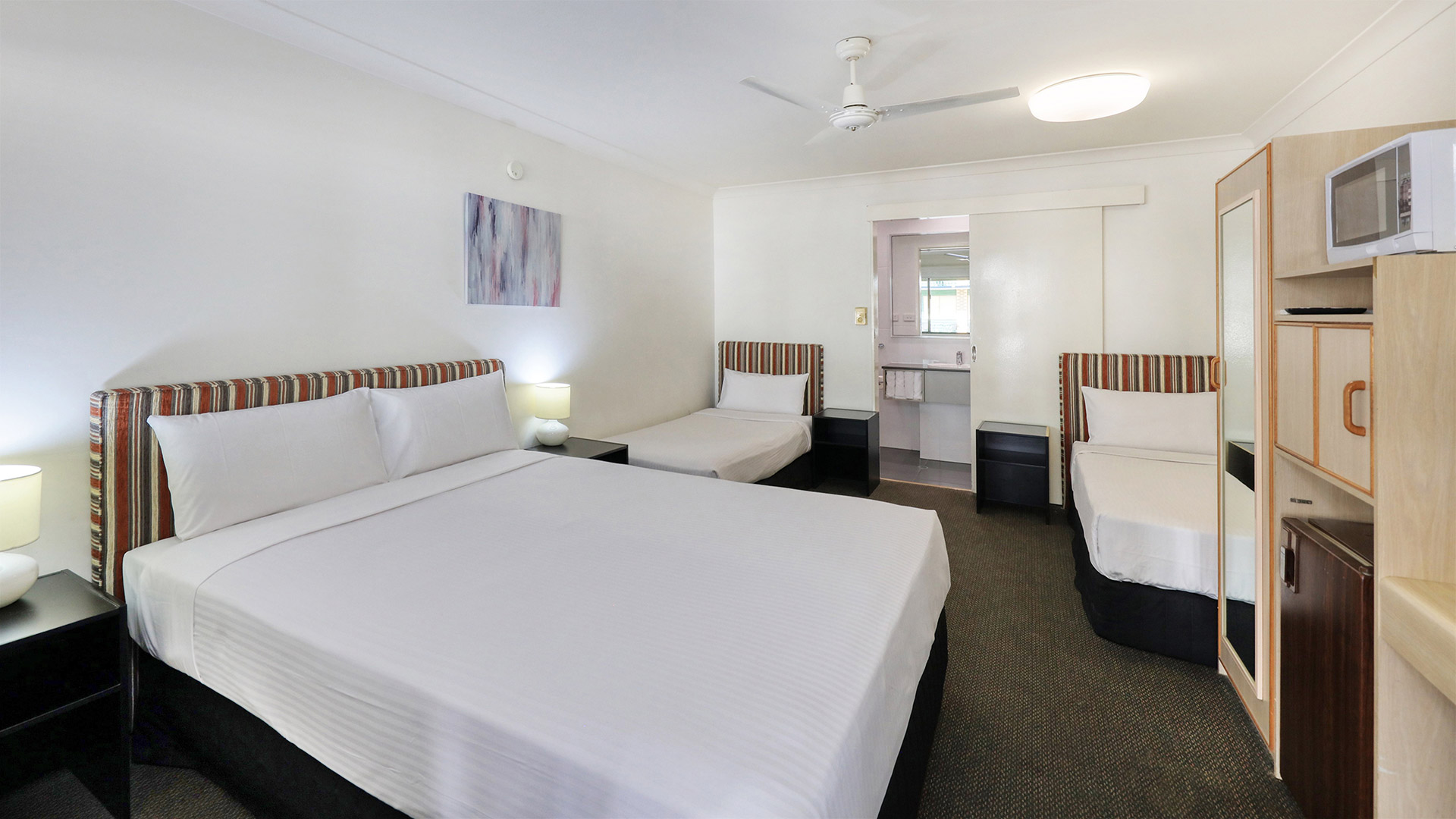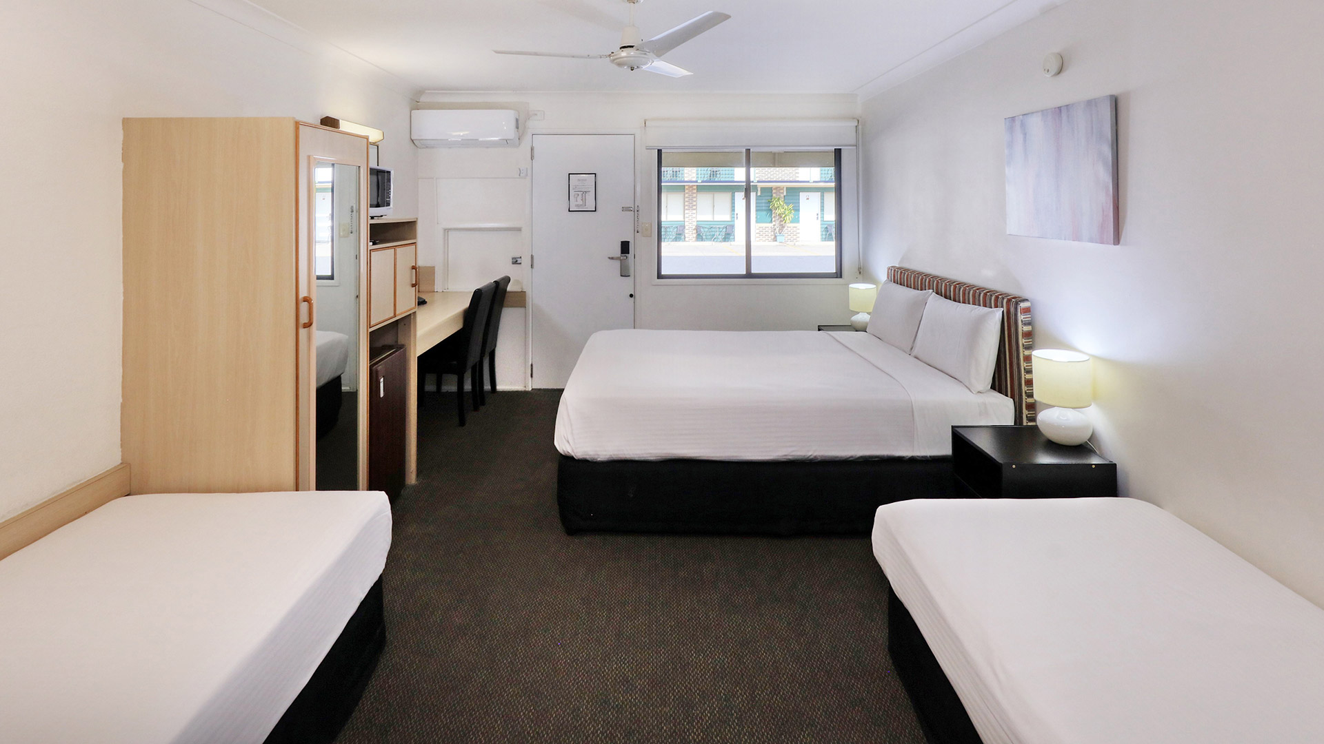 - 1 Queen and 2 Single Beds